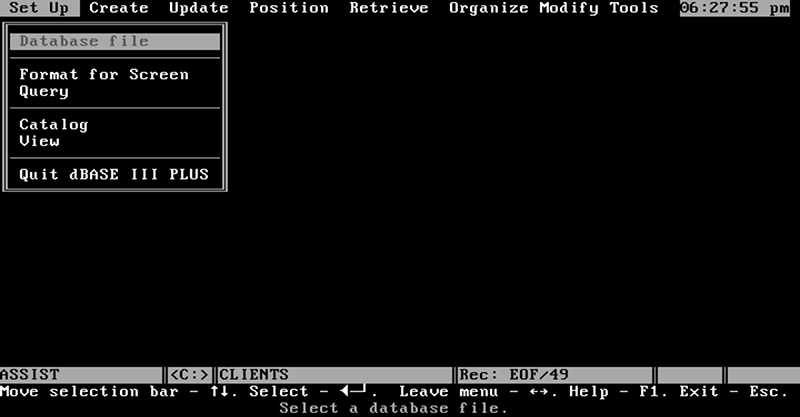 This is a long way from the first DBMS I used in 1993. DBase III. Market leader at the time. Shrouded in mystery. For a 17-year-old computer enthusiast this was ground-breaking stuff, even though I was not allowed to get into the nuts and bolts.