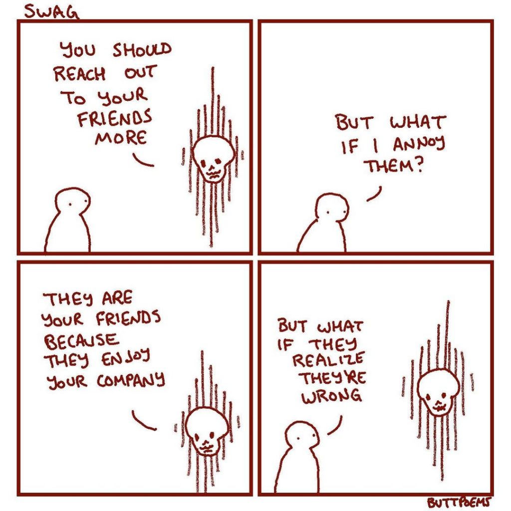 I am not the type to reach out to friends for a visit or a coffee. I could be burdening them. Like I am being a nuisance, needing company.